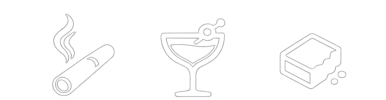External substances outside of provided herbal and cocktail provisions are strictly prohibited — violation results in immediate removal and security engagement